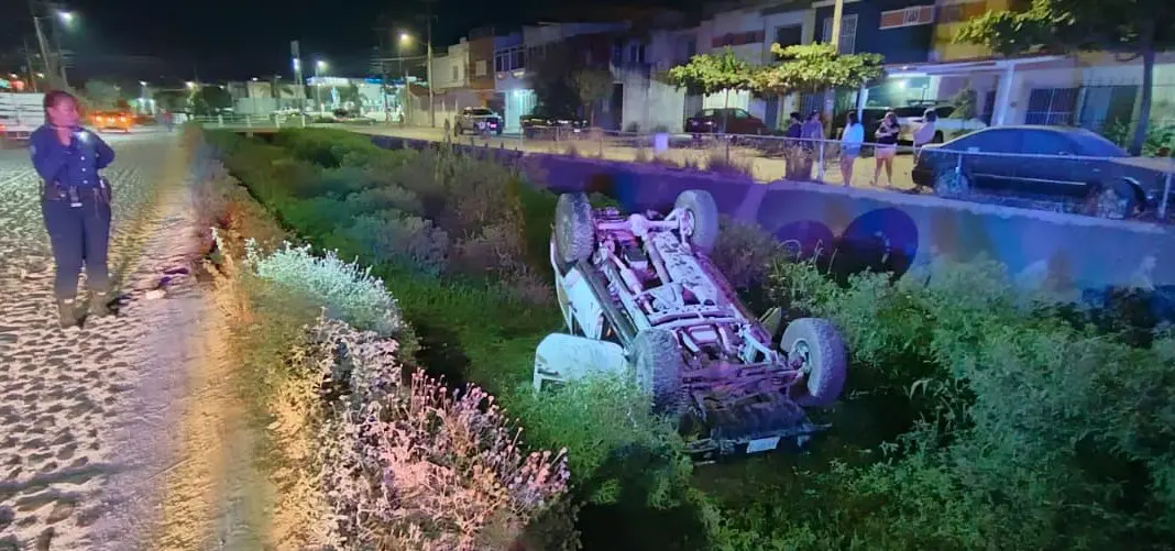 Durante la madrugada de este domingo, alrededor de las 02:49 horas, se reportó que una camioneta había caído al canal de aguas pluviales en el cruce de las calles Palma Areka y Las Palmas, en el fraccionamiento Parque Las Palmas, por lo que se solicitó el apoyo de las autoridades.