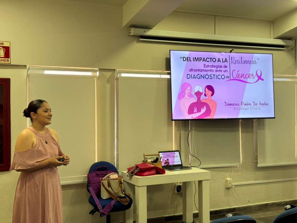 En el marco del mes rosa y la lucha contra el cáncer de mama, el Hospital Joya Marina llevó a cabo una charla titulada “Del impacto a la resiliencia: estrategias de afrontamiento ante un diagnóstico de cáncer”, impartida por la Licenciada Dámaris Piñón de Anda, psicóloga clínica.