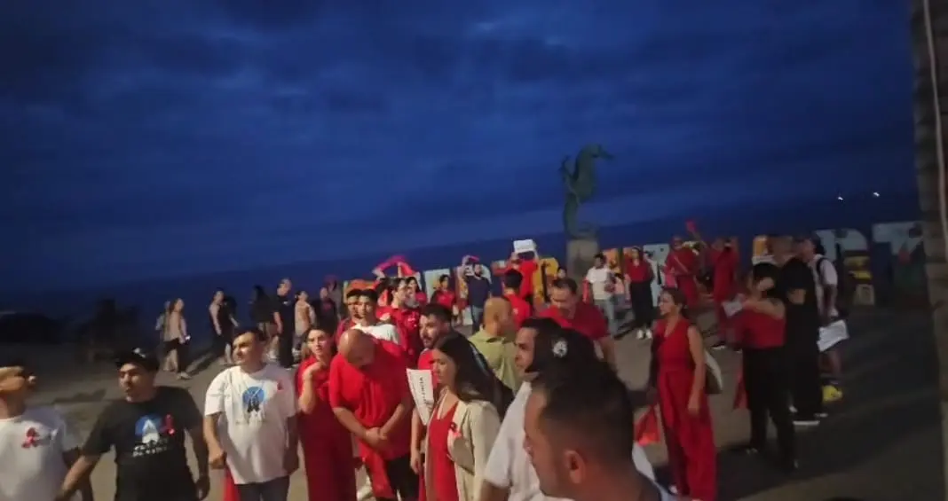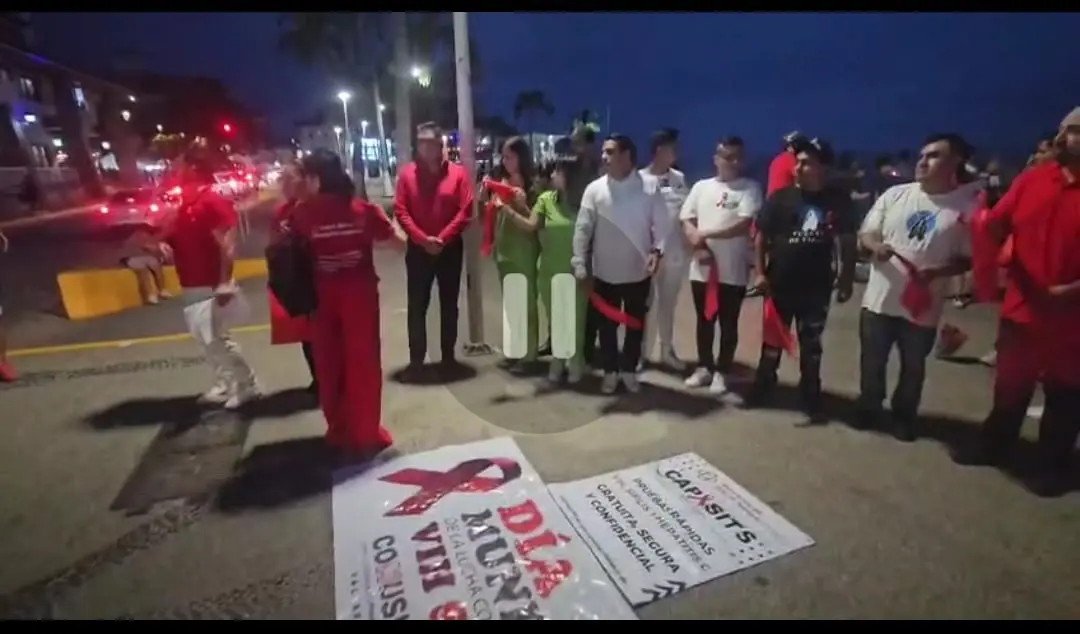 Caminata, Lazo Vivo y luces rojas en recuerdo del Día de la Lucha contra el Sida en Puerto Vallarta