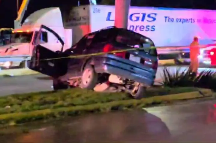 Un fuerte accidente se registró esta mañana de lunes en el camellón central del carril de sur a norte del boulevard Riviera Nayarit, a la altura del fraccionamiento El Roble y Costa Coral.