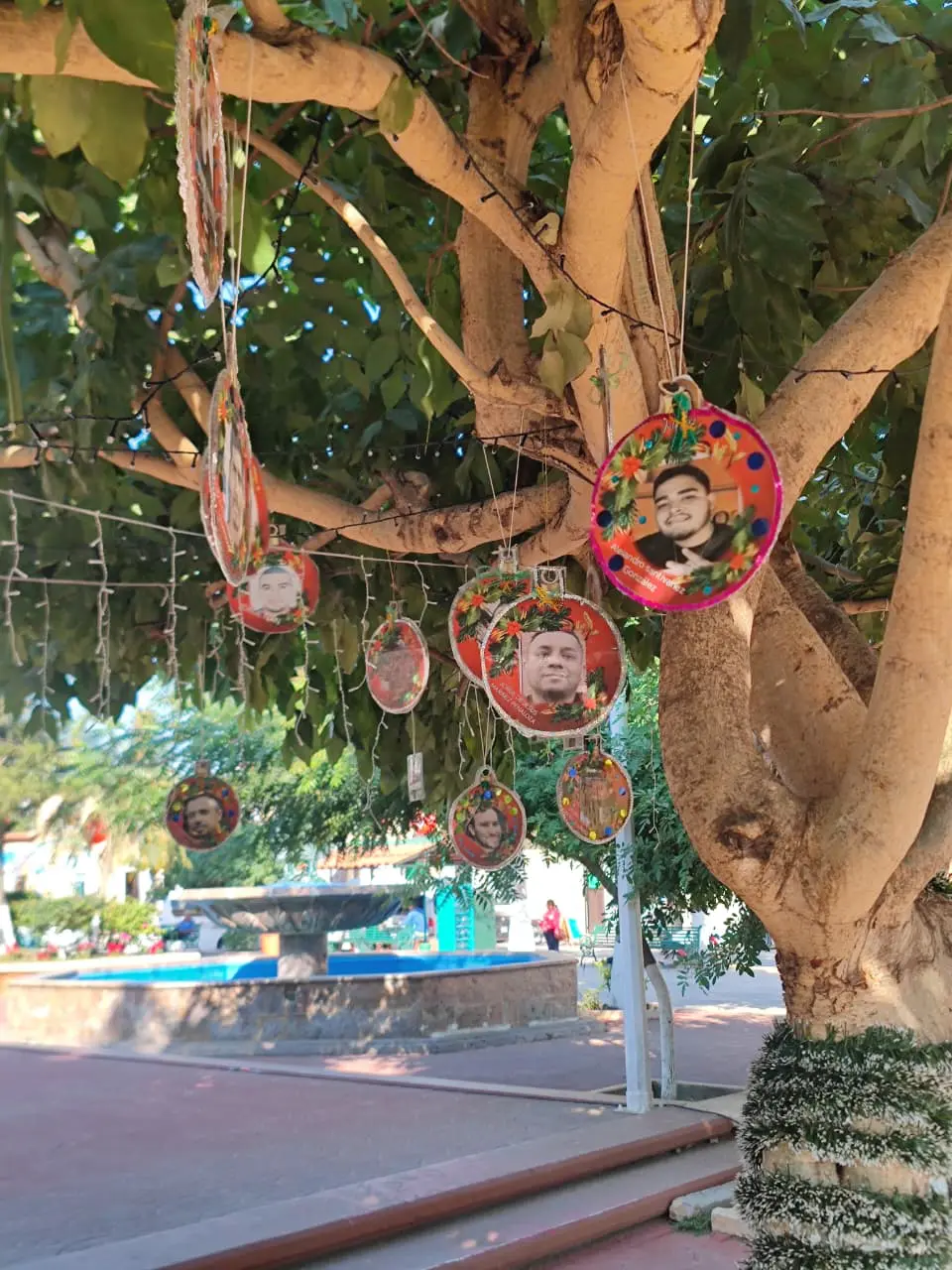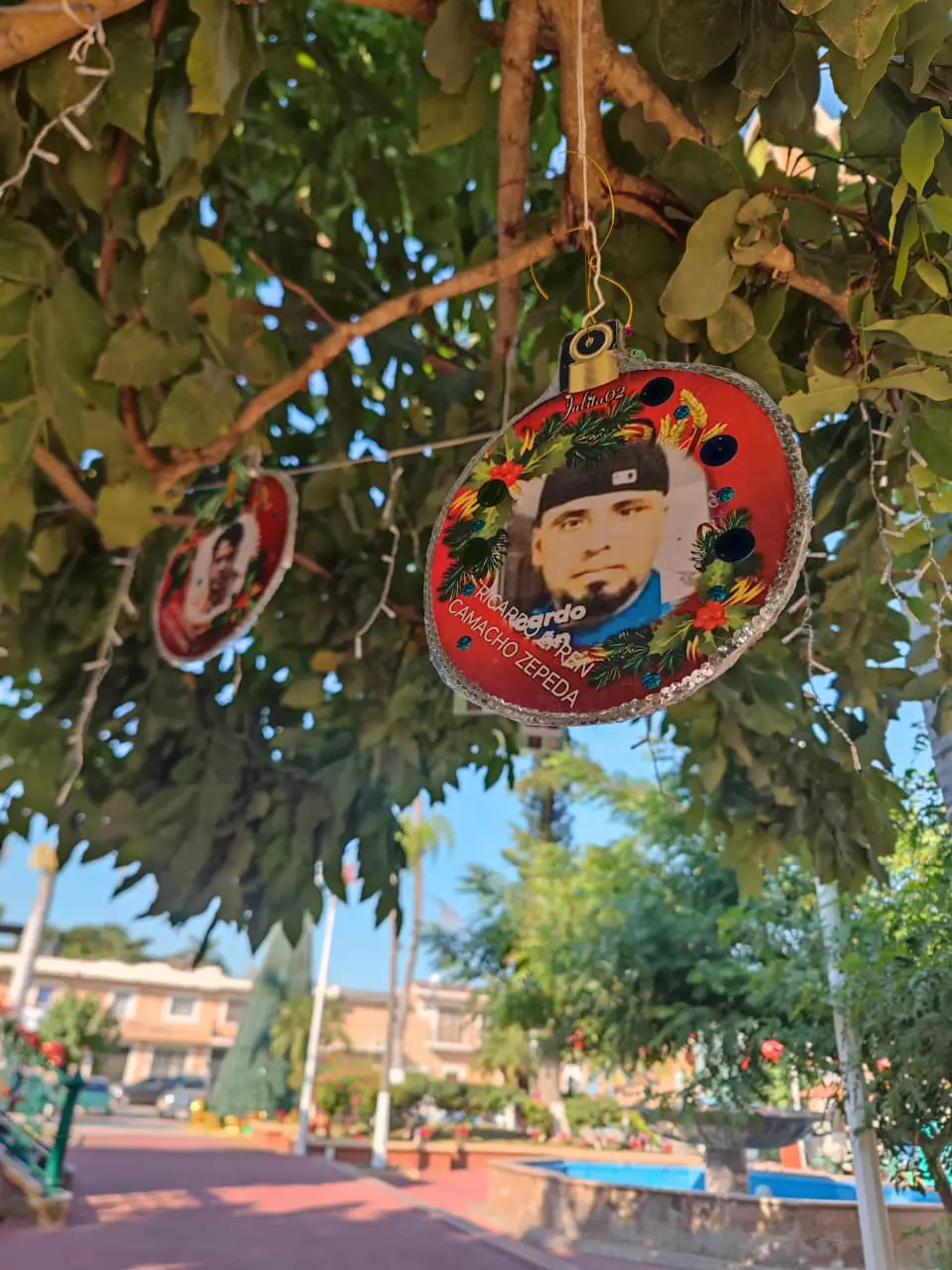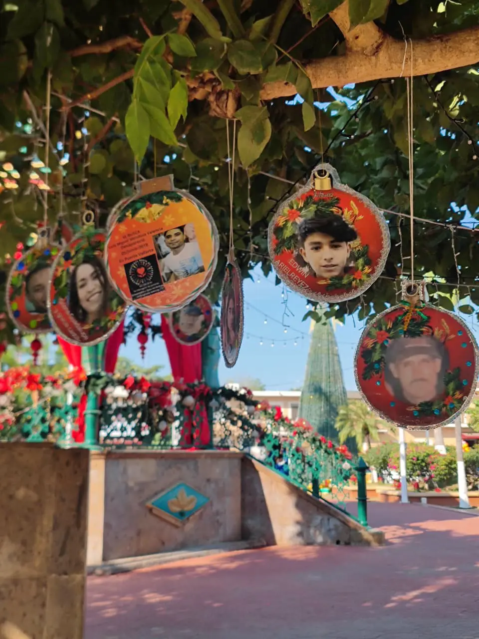 Alrededor de 100 esferas con fotografías cuelgan ya de los árboles de la plaza. En ellas aparecen jóvenes, adultos y personas de la tercera edad, convertidos simbólicamente en una decoración que rompe con el espíritu festivo, pero que mantiene viva la esperanza de volver a encontrarlos. Los colectivos informaron que se prevé colocar al menos 50 imágenes más, las cuales permanecerán de manera indefinida en el espacio público.