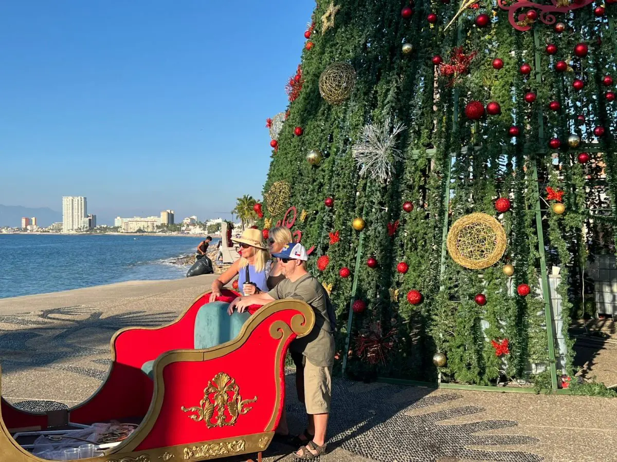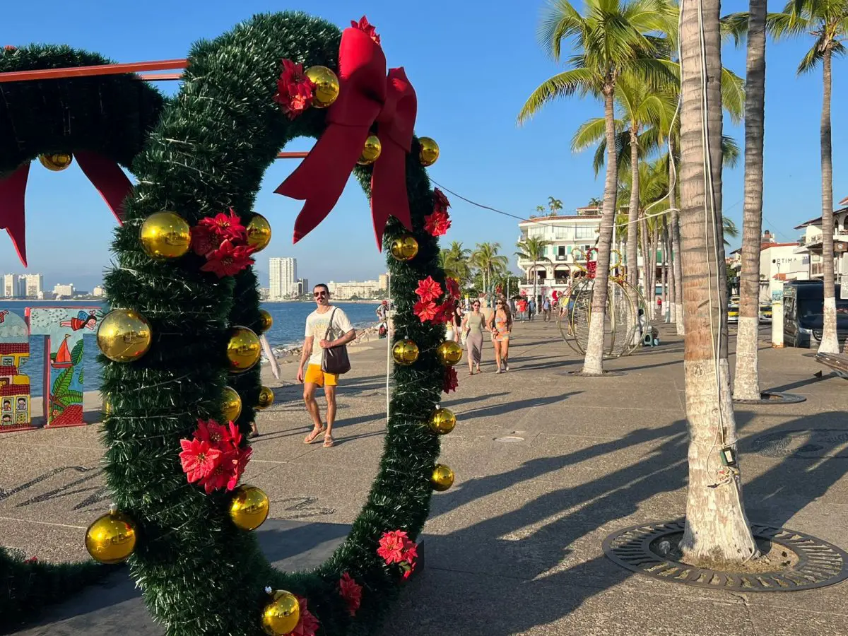 El malecón y plaza de armas de Puerto Vallarta son paseos imperdibles para turistas y locales, sitios que hoy ya se vistieron de Navidad, con enormes coronas de adviento, flores de nochebuena, soldados de cascanueces, gigantescas esferas, estrellas y un gran pino, decoración que se volvió interactiva, pues son un gran atractivo para los visitantes y vallartenses que se toman adentro o al pie de ellas sus fotografías y videos.