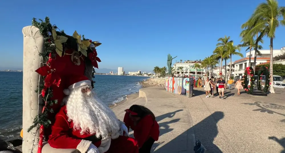 Malecón y plaza de Puerto Vallarta ya lucen adornos navideños; arribó Santa Claus