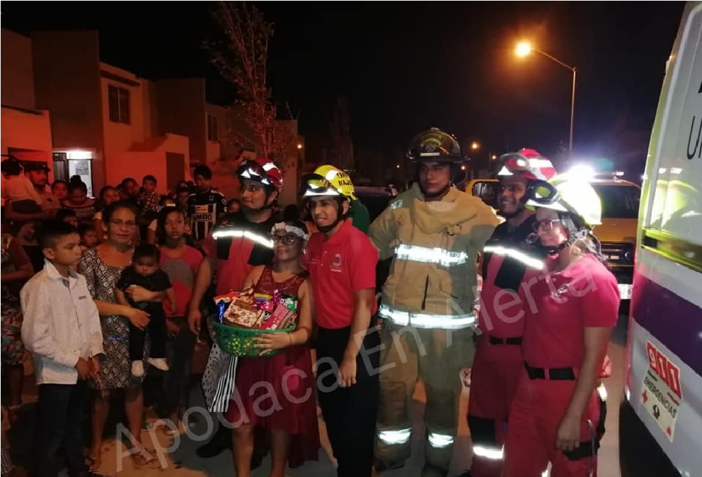 Un colectivo de bomberos llevó algunos presentes para la jovencita y un ‘señor de elotes’ se sumó al convivio con sus productos para amenizar el ambiente. Estos los repartió de forma gratuita.