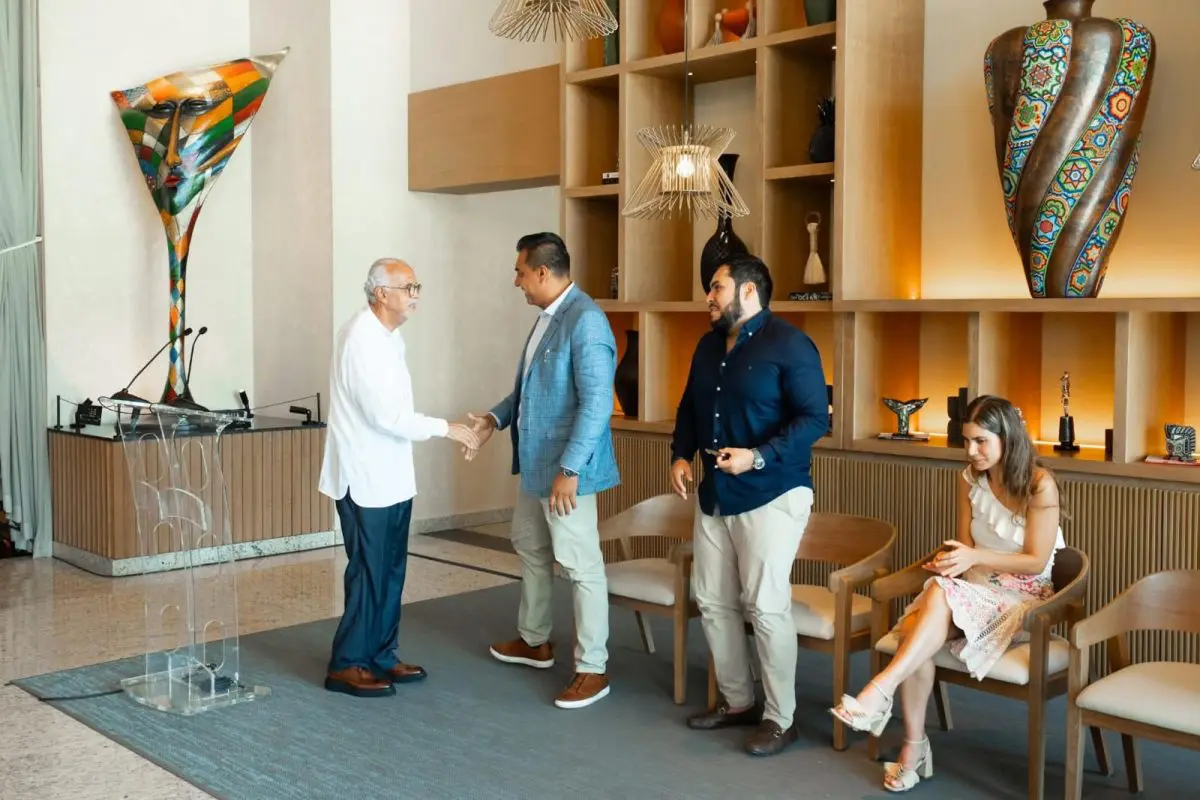 De manera sutil y aprovechando el momento, agradeció a Mariel Chapur, directora de Marketing y Desarrollo de Nuevos Proyectos en Palace Resorts e hija de José Chapur Zahoul, fundador y pionero del modelo de hoteles todo incluido en México con desarrollos en Quintana Roo, quien estableció este nuevo concepto en el destino. Navarro Quintero agradeció el cambio del nombre del complemento a “Riviera Nayarit”, cuando el concepto originalmente se había proyectado con el nombre “Vallarta”.