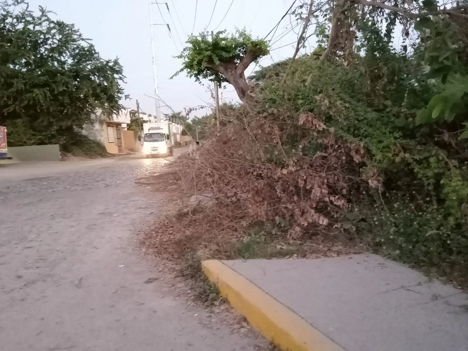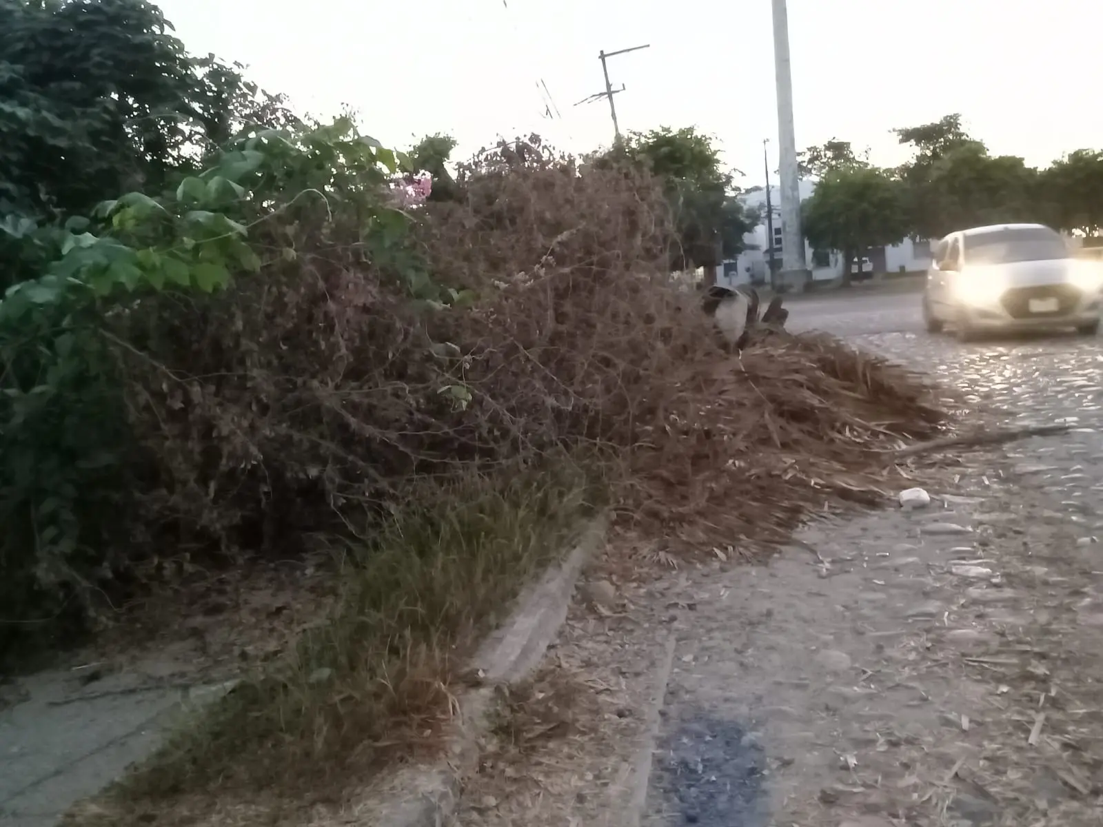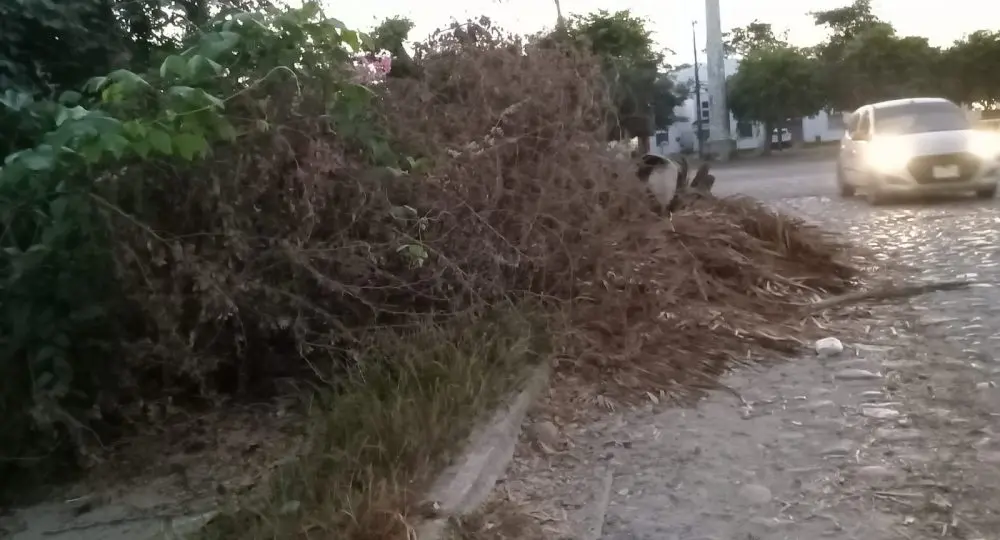 Señalan que desde el pasado 10 de octubre, cuando el huracán Lidia azotó a la región, la palmera y algunas ramas del árbol de guamúchil cayeron, desde entonces a las cuadrillas de servicios públicos municipales se les ha olvidado venir a limpiar esta zona.