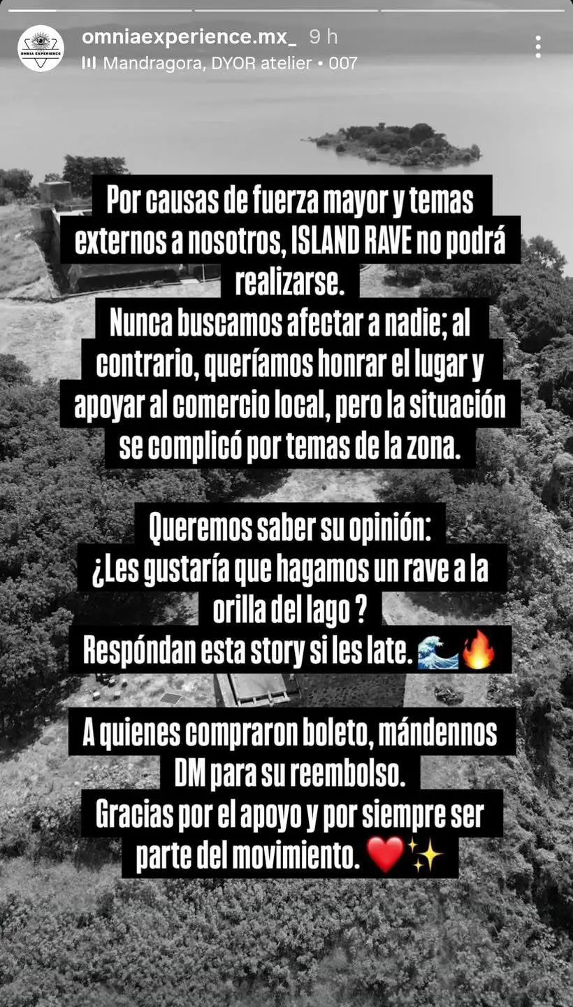 El festival electrónico “Island Rave”, organizado por Omnia Experience y Techno Hours Sessions, fue cancelado luego de que la comunidad indígena Coca de Mezcala denunciara públicamente que el evento pretendía realizarse en una isla que forma parte de su territorio ancestral y sagrado.