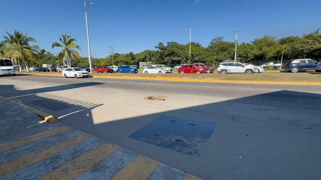 De acuerdo con los reportes, el registro permanece sin tapa desde hace varias semanas, obligando a quienes pasan por la zona a esquivarlo para evitar accidentes. La situación se agrava debido al flujo constante de personas que acuden a diversos lugares cercanos, así como de visitantes y trabajadores que transitan por esta importante vialidad.