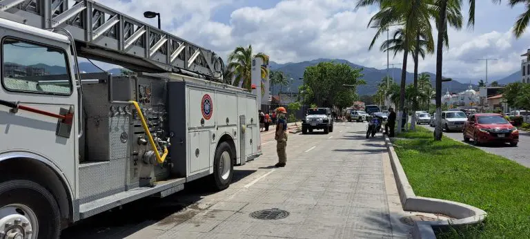 En Puerto Vallarta, a las afueras de la clínica 42 del IMSS, se desplegó un operativo que involucró a elementos de la Policía, Tránsito y Bomberos. Para facilitar la maniobra, se bloqueó la lateral en sentido sur-norte por seguridad.