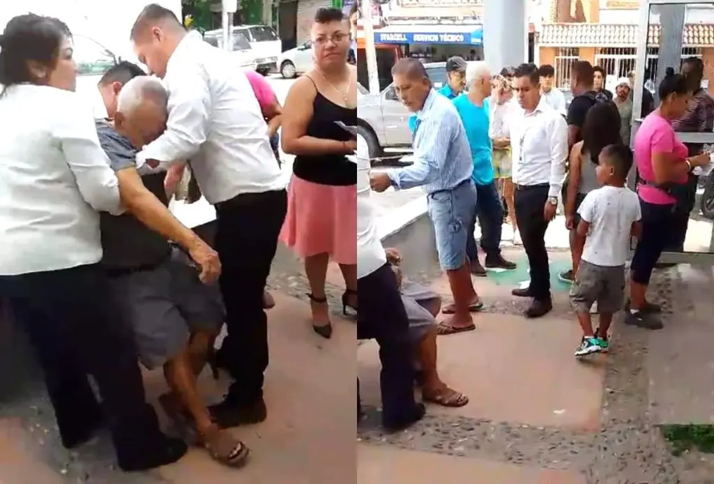 Son impactantes las imágenes donde el señor se desvanece, dos personas que aguardaban junto alcanzan a sostenerlo, el asombro es generalizado, incluso personal de la CFE salió a auxiliarlo y sacaron una silla para que se repusiera.